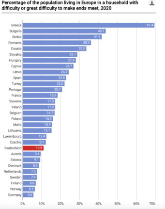 Ndërsa në Zvicër 10.9 për qind e popullsisë, ose rreth 720,000 njerëz, u prekën nga varfëria e të ardhurave në vitin pandemik.