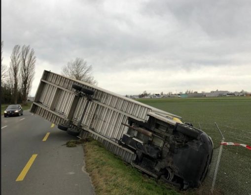 Stuhia e fuqishme në Zvicrën Lindore përmbysi 6 rimorkio kamionësh