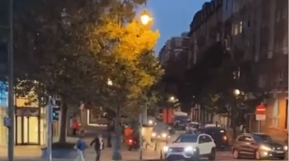 Nga pamjet që qarkullojnë, shihet një burrë me një xhaketë fluoreshente dhe një helmetë të bardhë, një armë në dorë, duke hipur në një skuter dhe duke ikur.