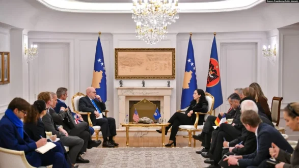 Presidentja e Kosovës, Vjosa Osmani, ka biseduar me ambasadorët e vendeve të QUINT-it dhe ambasadorin e BE-së, për të biseduar për zhvillimet e fundit në vend, një ditë pas sulmit kundër kanalit të ujit të Ibër-Lepencit në veri të vendit, njoftoi Presidenca.