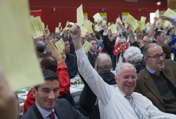 Në kuvendin e kësaj partie të mbajtur në Balsthal të Solothurnit, Kundër iniciativës në fjalë kanë votuar 295 delegatë ndërsa Pro iniciativës, 160 sish