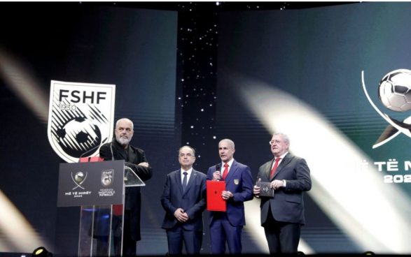 “Është kënaqësi të marr pjesë në këtë mbrëmje gala, të vlerësojmë FSHF që na bëri krenarë me pjesëmarrjen në Euro 2024. Sot po i japim trajnerit të Kombëtares një kontratë legale të legalizuar nga FSHF. Unë po e legalizoj si shqiptar, besoj se kam edhe mbështetjen tuaj”, tha Begaj.