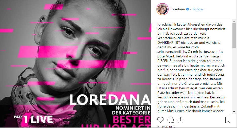 Loredana nominohet për çmimin në Gjermani