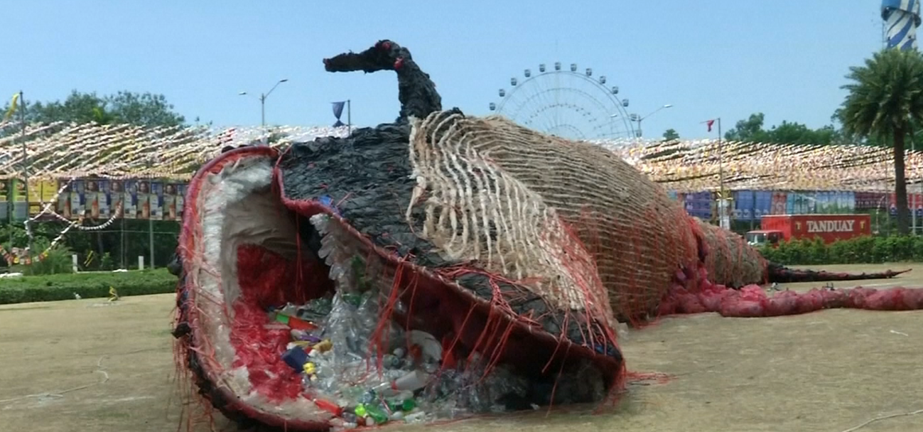 Skulptura e balenës së ngordhur nga plastika, për vetëdijesim