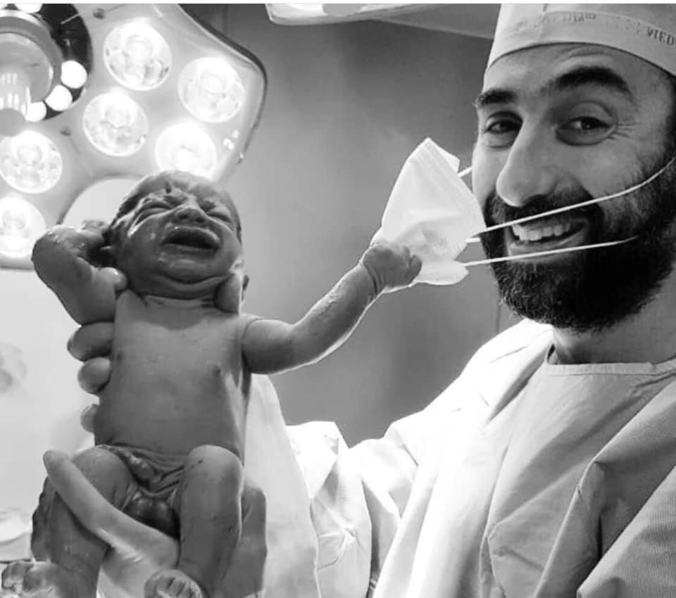 Fotoja e foshnjës së sapolindur duke i hequr maskën mjekut, kandidate për “Foton e vitit”