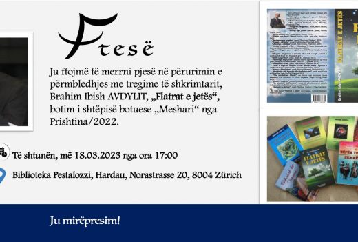 Promovimi bëhet në ambientet e bibliotekës Pestalozzi, në Zürich-Hardau. Norastrasse 20, 8004 Zürich, me fillim në orën 17:00