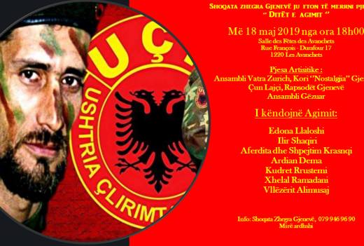 Me rastin e 20-vjetorit të rënies heroike të Heroit të Kombit, Agim Ramadani, Shoqata Zhegra në Gjenevë ka kënaqësinë t’ ju ftojë që të merrni pjesë në këtë ditë përkujtimore që do të mbahet më 18 maj 2019.  Adresa: Salle des Fêtes des Avanchets, Rue François Durafour 17, 1220 Les Avanchets. Koktej rasti nga ora […]