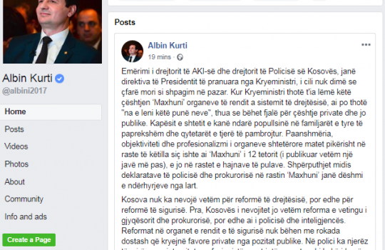 - Kurti: Thaçi e Haradinaj bënë pazar për drejtorin e AKI-së e Policisë