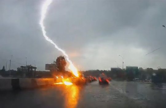 - VIDEO: Rrufeja godet veturën në rrugë