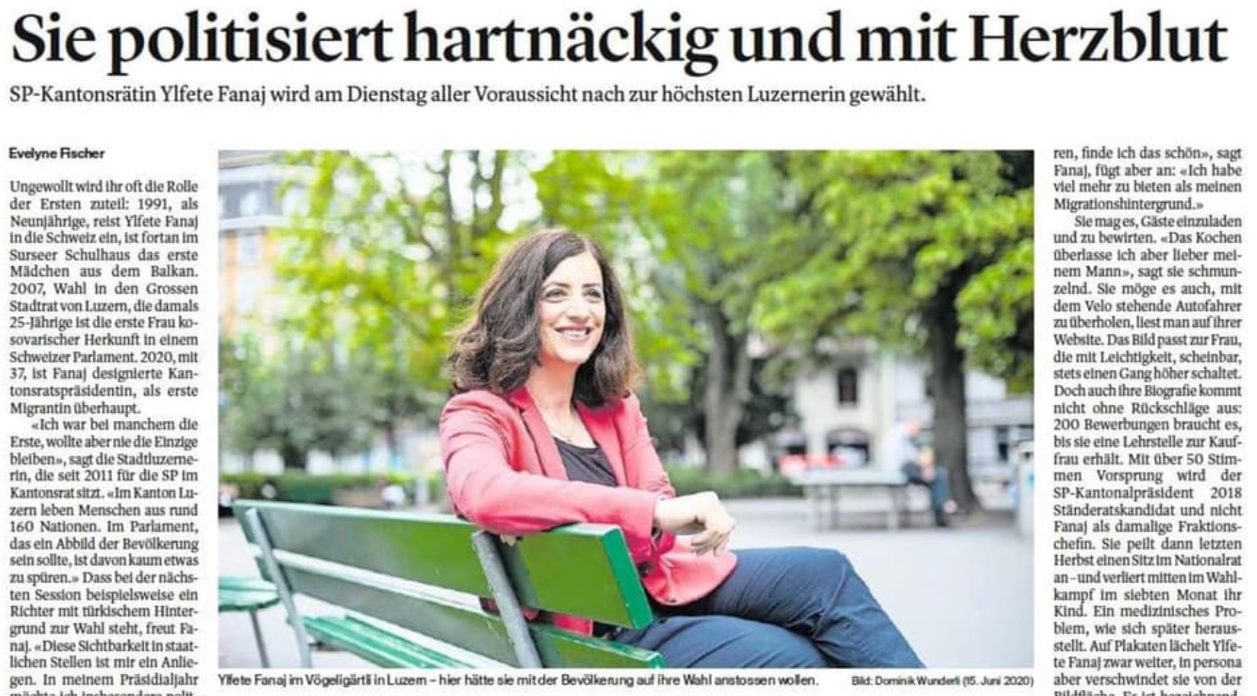 - Ylfete Fanaj nga sot është kryetare e Parlamentit të Kantonit të Lucernit