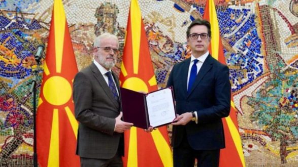 Sot, presidenti Stevo Pendarovski ia dorëzoi mandatin Talat Xhaferit për përbërjen e qeverisë kalimtare, që do të funksionojë deri në zgjedhjen e qeverisë së re që do të formohet pas zgjedhjeve kuvendare, përcjell albinfo.ch.