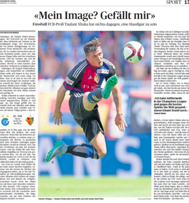 Ndërsa ata që e duan Taulantin thonë se “vullneti i tij luftarak është shembullor”, “Xhaka vihet gjithmonë në shërbim të ekipit dhe kur e kërkon nevoja, edhe para ekipit”. Ndërsa fakti se ai ndonjëherë e hedh në Internet ndonjë foto me veturën e tij sportive “është normal për një të ri 24 vjeçar” dhe batutat e tij janë “pasqyrim i krenarisë”. Po ashtu vendimi i tij që të luajë për Shqipërinë është thjesht një endim ku Xhaka ka dëgjuar zërin e zemrës së tij”. Kështu shkruan gazeta “Aargauer Zeitung” në nje portret të zgjeruar për Taulant Xhakën.