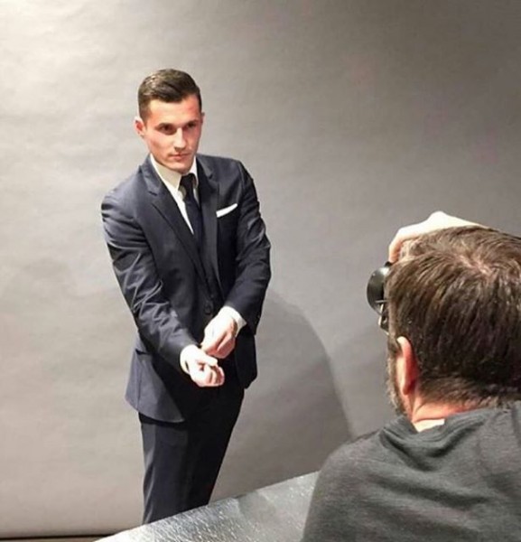 I veshur me një kostum klasik, mesfushori shqiptar dukej një “Boss” i vërtetë ndërsa pozonte përpara aparatit fotografik.
