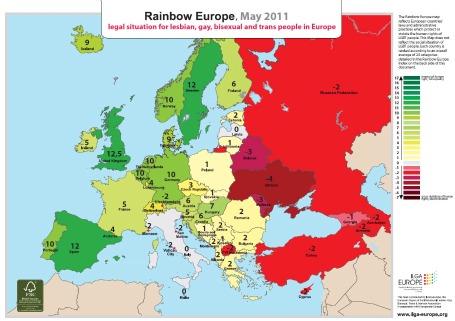 Britania e Madhe radhitet në krye të listës së mbrojtjes të të drejtave të homoseksualëve me 12.5 pikë, kurse në fund të listës ndodhen Bjellorusia (-3), Moldavia (-3) dhe Ukraina (-4).