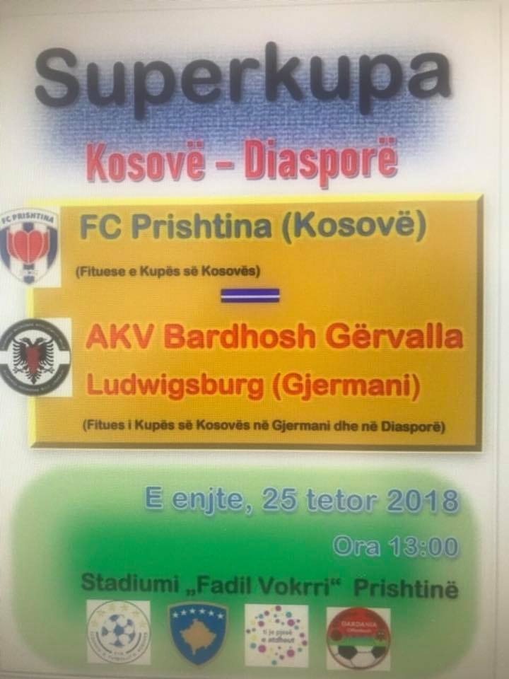 Në duelin që do të zhvillohet të enjten nga ora 13:00 në Prishtinë do të takohen FC Prishtina dhe AKV Bardhosh Gërvalla Ludwigsburg e Gjermanisë. Kjo e fundit ka fituar Kupën në Gjermani dhe në diasporë.