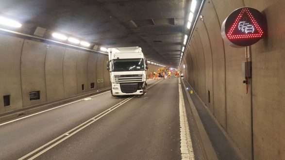 Një tren mallrash doli nga shinat në tubin perëndimor të tunelit bazë më 10 gusht 2023 në orën 12:48, ndërsa udhëtonte nga Chiasso (TI) për në Bazel. Sipas raportit të përkohshëm të Shërbimit Zviceran të Hetimit të Sigurisë (Sese), aksidenti është shkaktuar nga thyerja e gjurmës së rrotës. Një fragment i një disku të rrotës është thyer rreth dhjetë kilometra pasi ka hyrë në tunel, duke shkaktuar thyerje dhe fragmente të tjera.