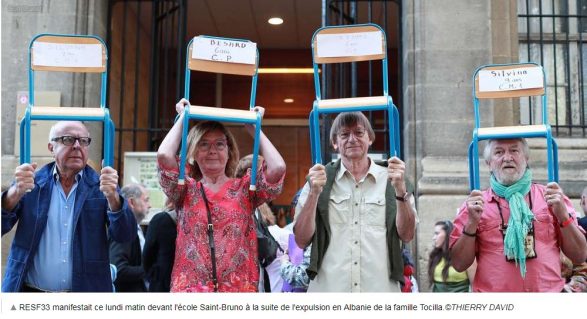Të hënën në mëngjes, në ditën e parë të shkollës, aktivistët nga “Rrjeti i arsimit pa kufij” (RESF) 33, ishin mbledhur para dyerve të shkollës “Saint-Bruno” në Bordeaux për të sensibilizuar ndërgjegjësimin midis mësuesve dhe prindërve të nxënësve, për situatën e familjes Toçilla.