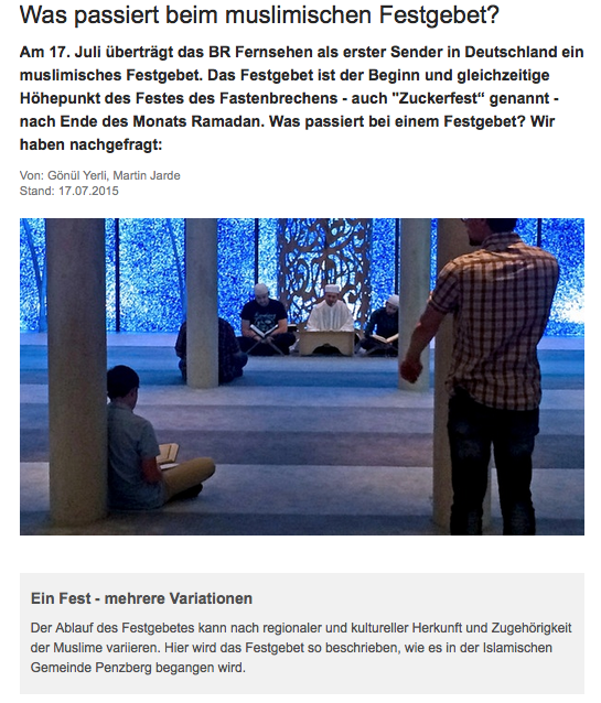 Më 17 korrik televizioni gjerman BR transmeton për herë të parë drejtpërdrejt në Gjermani faljen e namazit të Fiter Bajramit.