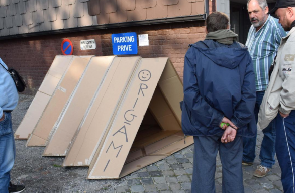 Tendat do të tolerohen nga policia, thonë ata. Sipas “BX1”, këto tenda u dhuruan nga një fabrikë kartoni dhe puna kryesore u bë në një burg në Lantin.