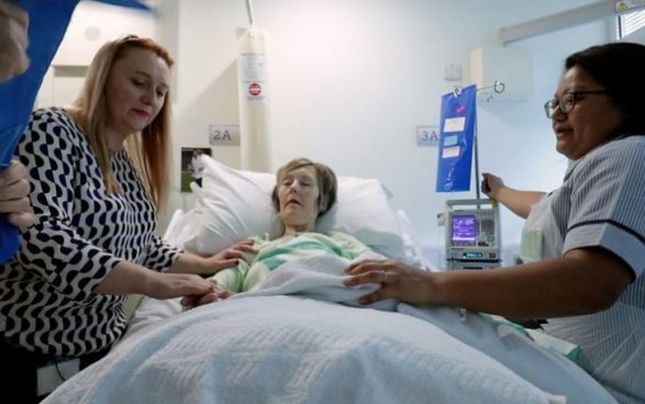 Karen Childs është pacientja e parë në testimin klinik dhe është duke marrë trajtimin për një tumor në mëlçi.