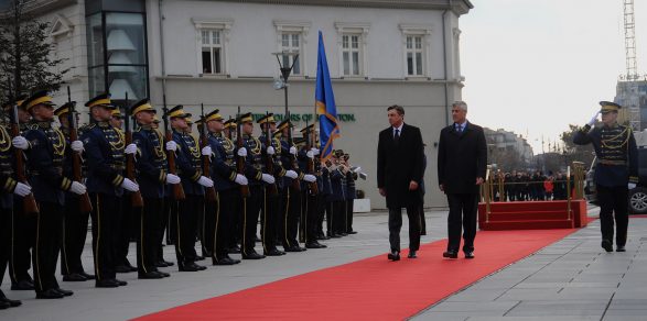 Presidenti i Republikës së Kosovës, Hashim Thaçi, priti sot me nderimet më të larta shtetërore, presidentin e Republikës së Sllovenisë, Borut Pahor i cili qëndoi për vizitë zyrtare në Kosovë. Pas ceremonisë shtetërore të dy presidentët mbajtën takimin e përbashkët kokë më kokë dhe më pas edhe takimin e përbashkët të të dyja delegacioneve, gjatë të cilit u vlerësua lartë bashkëpunimin i ndërsjellë në mes të dyja vendeve.