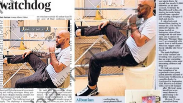 Një vrasës i dënuar shqiptar po shkel ligjin duke shpërndarë video dhe duke postuar në rrjetet sociale nga qelia e tij në burgun e Mançesterit, pavarësisht se rojet e burgut i konfiskuan telefonat inteligjentë.