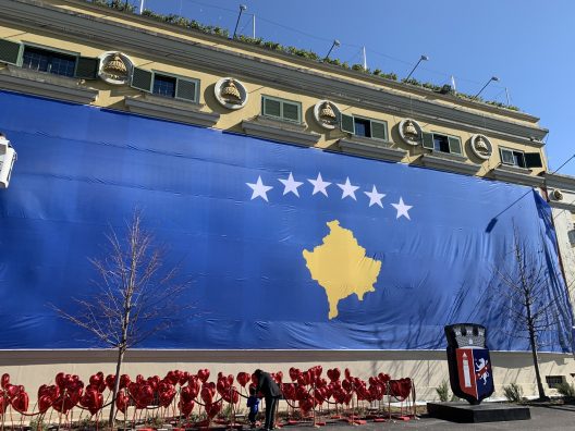 Kryeqyteti i Shqipërisë, Tirana, ka marrë ngjyrat e flamurit të Kosovës, e cila më 17 shkurt feston 12-vjetorin e Pavarësisë.