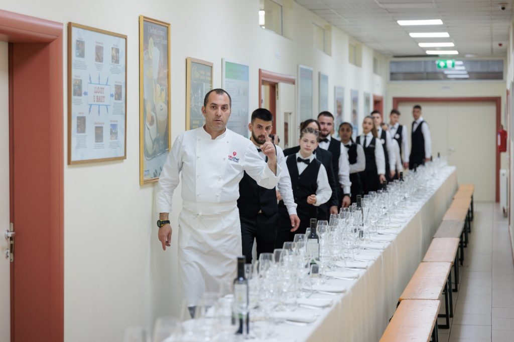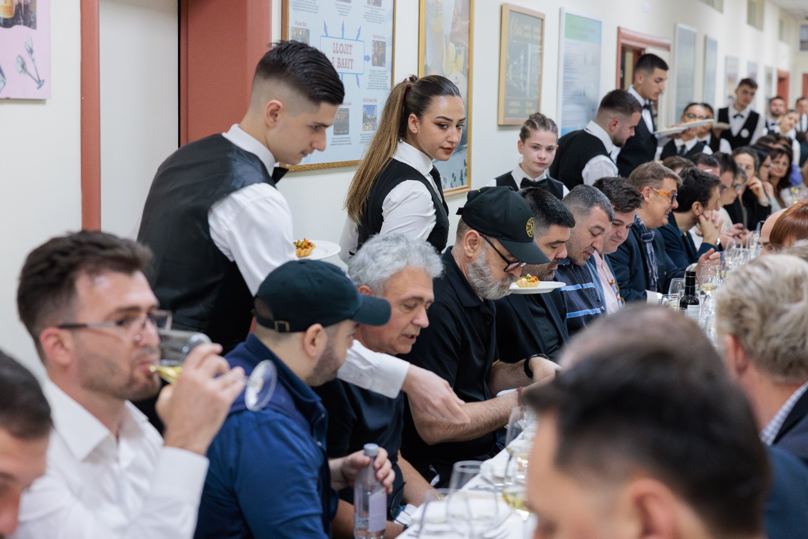 Një moment i veçantë i ditës së parë ishte edhe darka e organizuar në Shkollën e Mesme të Turizmit dhe Hotelerisë në Tiranë, e cila bashkëpunon me shkollën EHL në Lozanë, ku studentët, të koordinuar nga shefat Sokol Prenga dhe Gentian Skëndaj, prezantuan një eksperiencë kulinare që ndërthurte traditën me interpretimet bashkëkohore, duke dëshmuar rëndësinë e edukimit dhe përgatitjes së brezit të ri për sektorin HORECA.