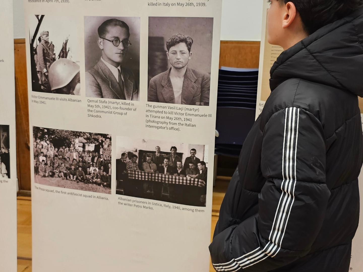 Gjatë aktivitetit u shfaq 𝐟𝐢𝐥𝐦𝐢 klasik shqiptar “𝐓𝐨𝐦𝐤𝐚 𝐝𝐡𝐞 𝐒s𝐡𝐨𝐤ë𝐭 𝐞 t𝐢𝐣”, i cili përcjell mesazhin e guximit dhe rezistencës së brezit të ri shqiptar gjatë Luftës së Dytë Botërore. Pjesëmarrësit gjithashtu patën mundësinë të vizitojnë një 𝐞𝐤𝐬𝐩𝐨𝐳𝐢𝐭ë 𝐦𝐞 𝐝𝐨𝐤𝐮𝐦𝐞𝐧𝐭𝐞 𝐝𝐡𝐞 𝐟𝐨𝐭𝐨𝐠𝐫𝐚𝐟𝐢 𝐡𝐢𝐬𝐭𝐨𝐫𝐢𝐤𝐞, që ndriçon rolin dhe kontributin e shqiptarëve gjatë kësaj periudhe vendimtare.