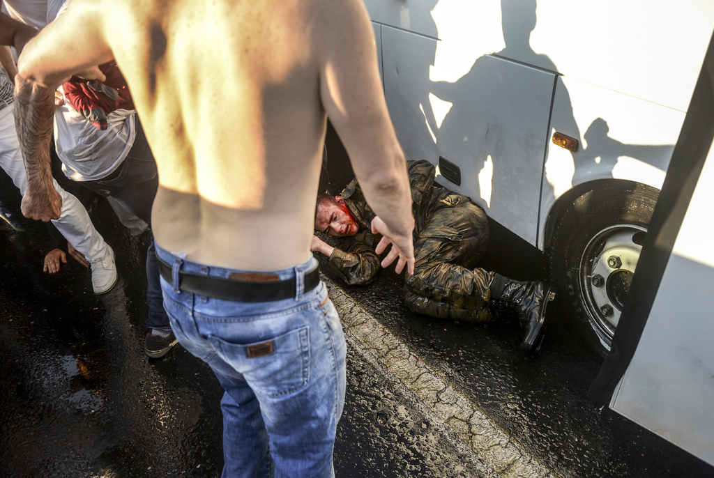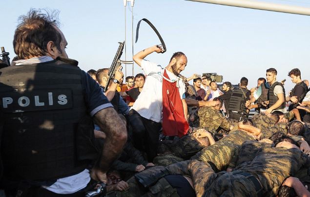 Pamjet tmerruese flasin për dhunën e ushtruar nga protestuesit pro-qeveritarë ndaj puçistëve.