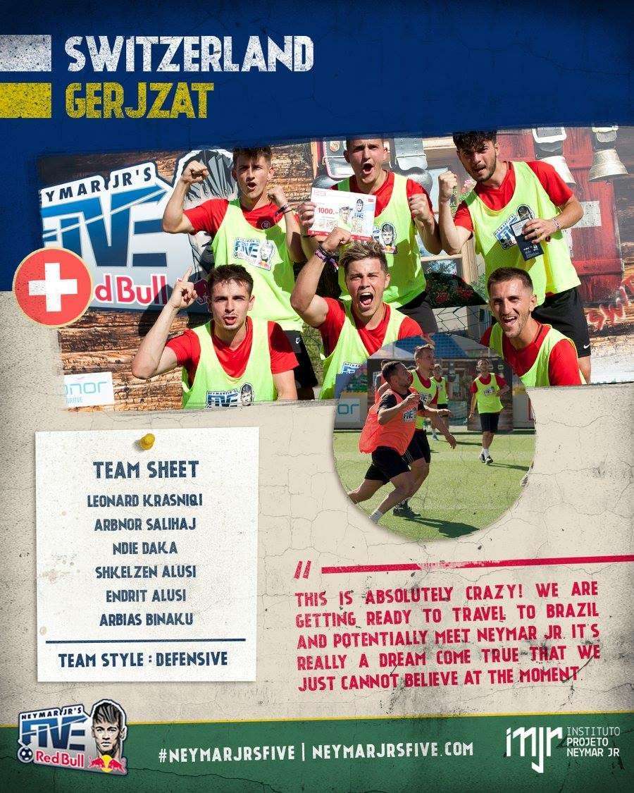Ata përfaqësojnë Zvicrën dhe janë në mesin e 53 ekipe nga mbarë bota që po marrin pjesë në këtë turnir të quajtur Finalja Botërore e turnirit futbollistik «Neymar Jr’s Five», i cili ka filluar dje i ndarë në 9 grupe me nga 6 ekipe.