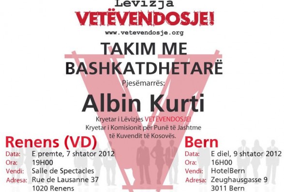 Lëvizja VETËVENDOSJE!, Qendra Zvicër, ka nderin t’ju ftojë në takimet e organizaura me bashkatdhetarë.