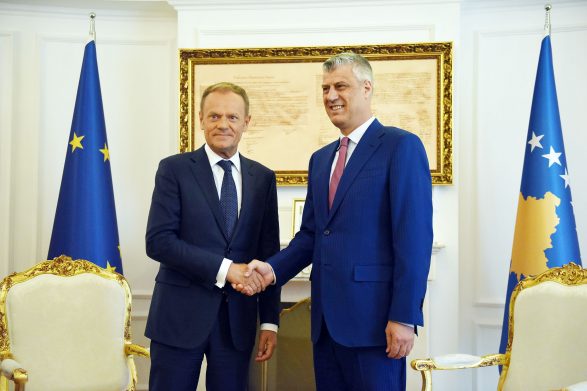 Presidenti i Këshillit Evropian, Donald Tusk, ka kërkuar konsensus politik në Kosovë për avancimin e vendit drejt Bashkimit Evropian. Pas takimit me presidentin Hashim Thaçi, Tusk ka thënë se lufta kundër krimit të organizuar dhe korrupsionit kërkon konsensus politik.