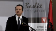 Kryetari i Lëvizjes Vetëvendosje, Albin Kurti, në mbledhjen e Këshillit të...