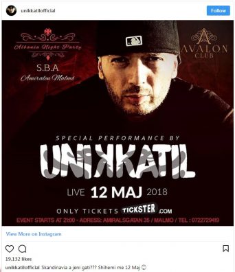 Përmes rrjeteve sociale, Unikkatili ka treguar se do të mbajë koncerte të ndryshme në Evropë, e një ndër to do të jetë në Skandinavi më 12 maj. “Skandinavi, a jeni gati, shihemi me 12 maj”, ka shkruar ai.