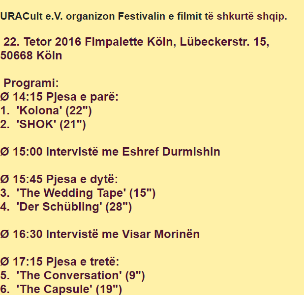URACult e.V. organizon Festivalin e filmit të shkurtë shqip