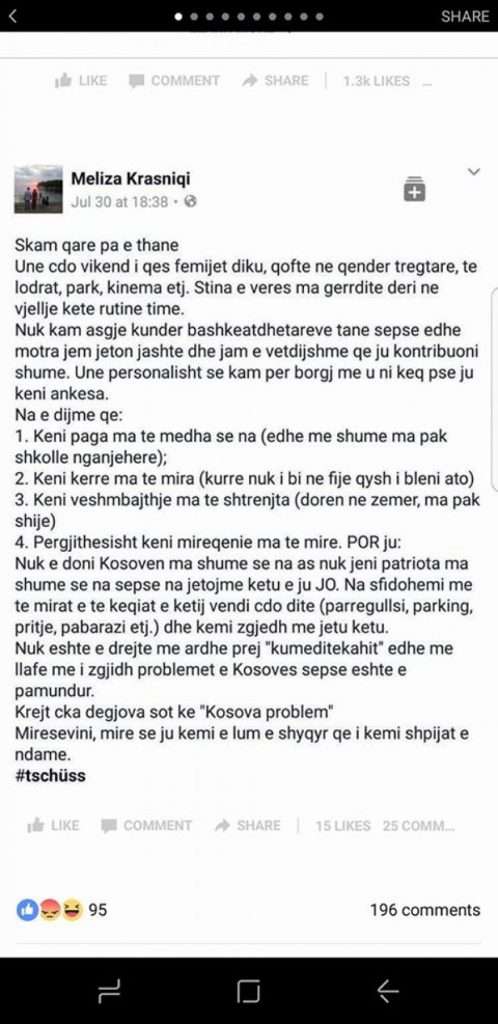 Meliza Krasniqi në postimin e saj të shkurtër, përmes gjuhës së pamatur dhe me premisa urrejtjeje, ka arritur të kthejë kundër vetes një numër shumë të madh të mërgimtarëve dhe jo vetëm të tyre