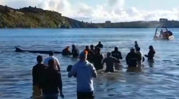 Ushtria në Kili shpëton balenën e bllokuar në ishull
