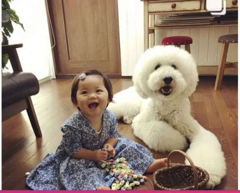 Vajza njëvjeçare dhe qeni i saj – miq të pandashëm