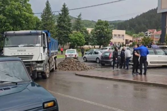 Ata e ngritën barrikadën duke shkarkuar zhavorr nga njëra anë e afrimit drejt komunës dhe duke bllokuar kështu atë pjesë të rrugës.