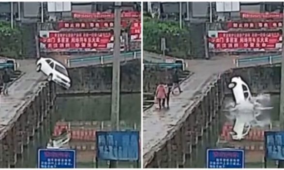 Një burri në Kinë i janë dashur vetëm 10 minuta pasi kaloi testin e vozitjes që me veturën e re që e bleu të përfundojë në ujë.