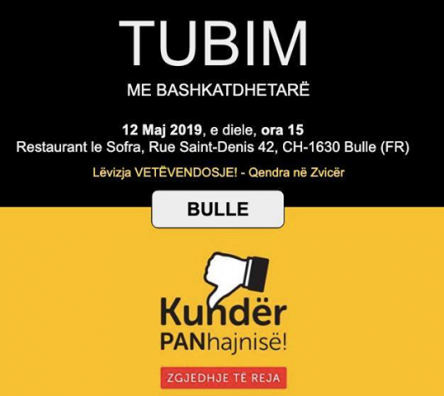 Në vazhdën e tubimeve që ka nisur tash e disa kohë me moton “Kundër PANhajnisë”, Lëvizja Vetëvendosje njofton se do të mbajë një tubim edhe me diasporën në Zvicër.