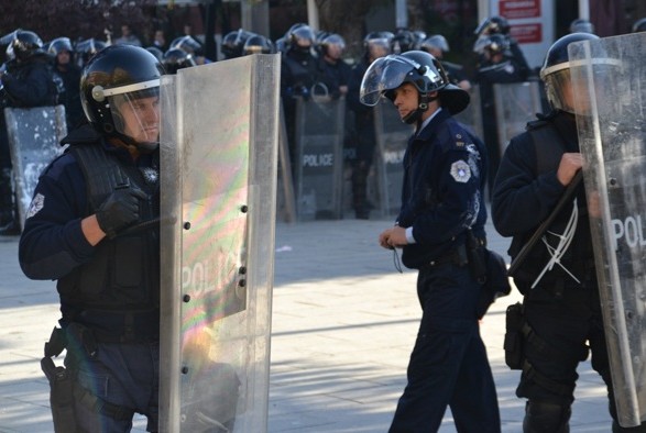 Menjëherë kundër protestuesve ka reaguar Policia e Kosovës me gaz lotsjellës dhe shufra gome, ndërsa protestuesit iu përgjigjen me domate të prishura dhe ngjyrë të bardhë. Përleshjet kanë vazhduar për orë të tëra, ndërsa në mbrëmje Vetëvendosje nëpërmjet një komunikate për media, njofton se protesta do të vazhdojë edhe të martën në ora 11.