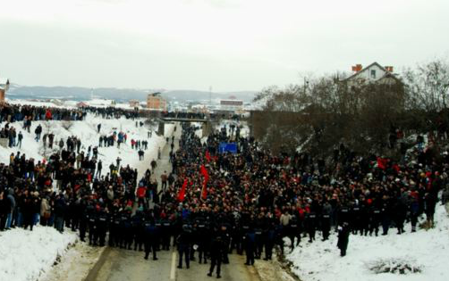 Protestuesit që janë mbledhur në rrugët magjistrale që çojnë kah pikat kufitare në Merdare dhe te Dheu i Bardhë, vazhdojnë të qëndrojnë aty që nga ora 13, ndërsa lideri i Lëvizjes Vetëvendosje, Albin Kurti, në një prononcim për mediet në Prishtinë, ka paralajmëruar vazhdimin e protestave. Megjithatë televizionet kosovare që po raportojnë direkt nga vendi i ngjarjes konstatojnë se po zvogëlohet numri i protestuesve në dy pikat kufitare.