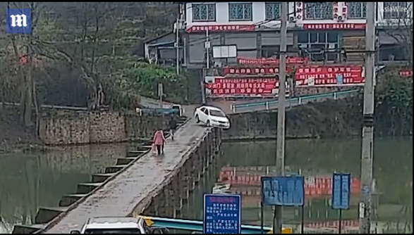 Kjo që do të shihni në pamjet më poshtë është momenti tronditës kur Zhang zhytet në lumë, pas një kthese të gabuar në një urë, që ndodhet në provincën jugore kineze të Guizhou, transmeton TCH.