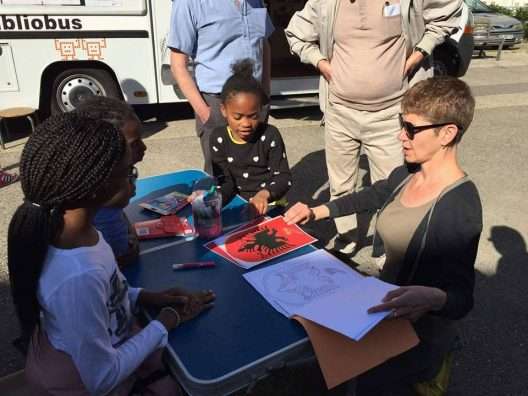 Mara dhe Fabienne janë dy punonjëset e bibliotekës së Lionit që organizuan takimin e djeshëm “Vishni ngjyrat e Shqipërisë”.