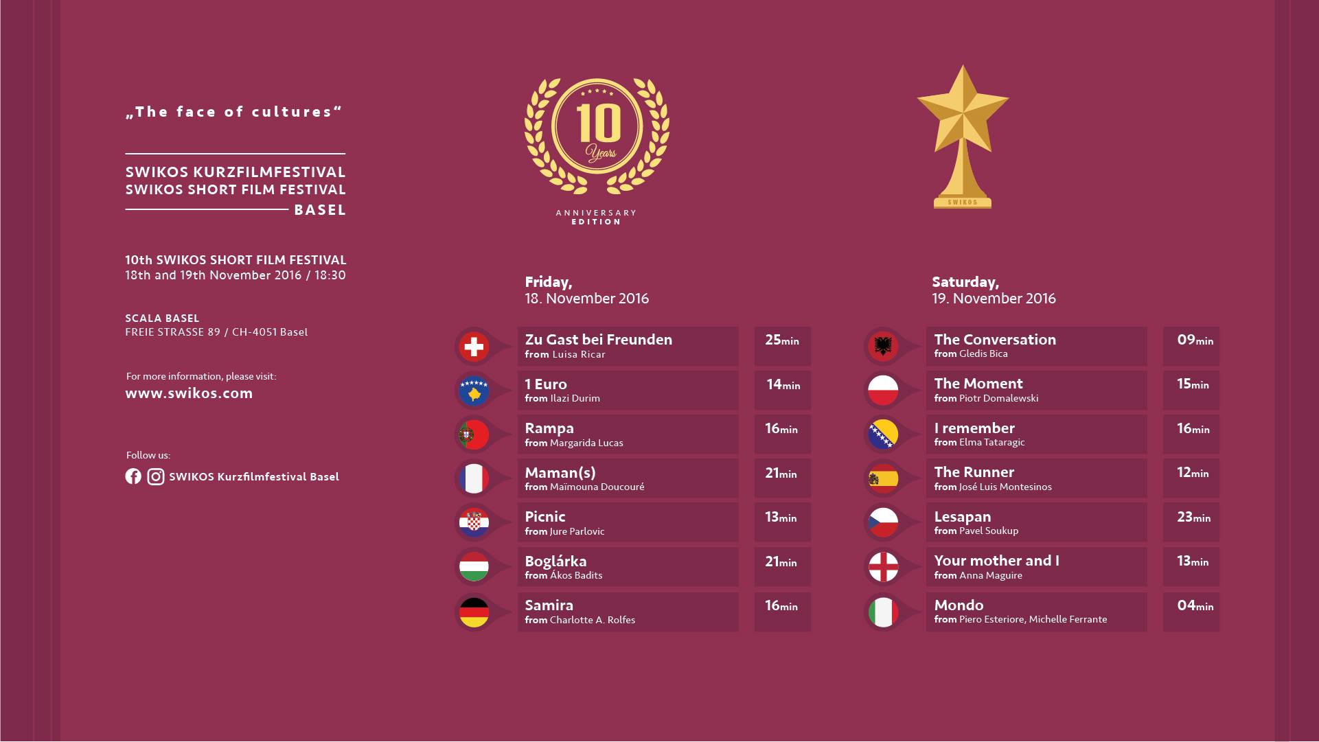 „Swikos“, festivali shqiptaro-zviceran i filmit të shkurtë mban edicionin e 10-të jubilar më 18 dhe 19 nëntor, në Scala Basel, Freiestrasse 89