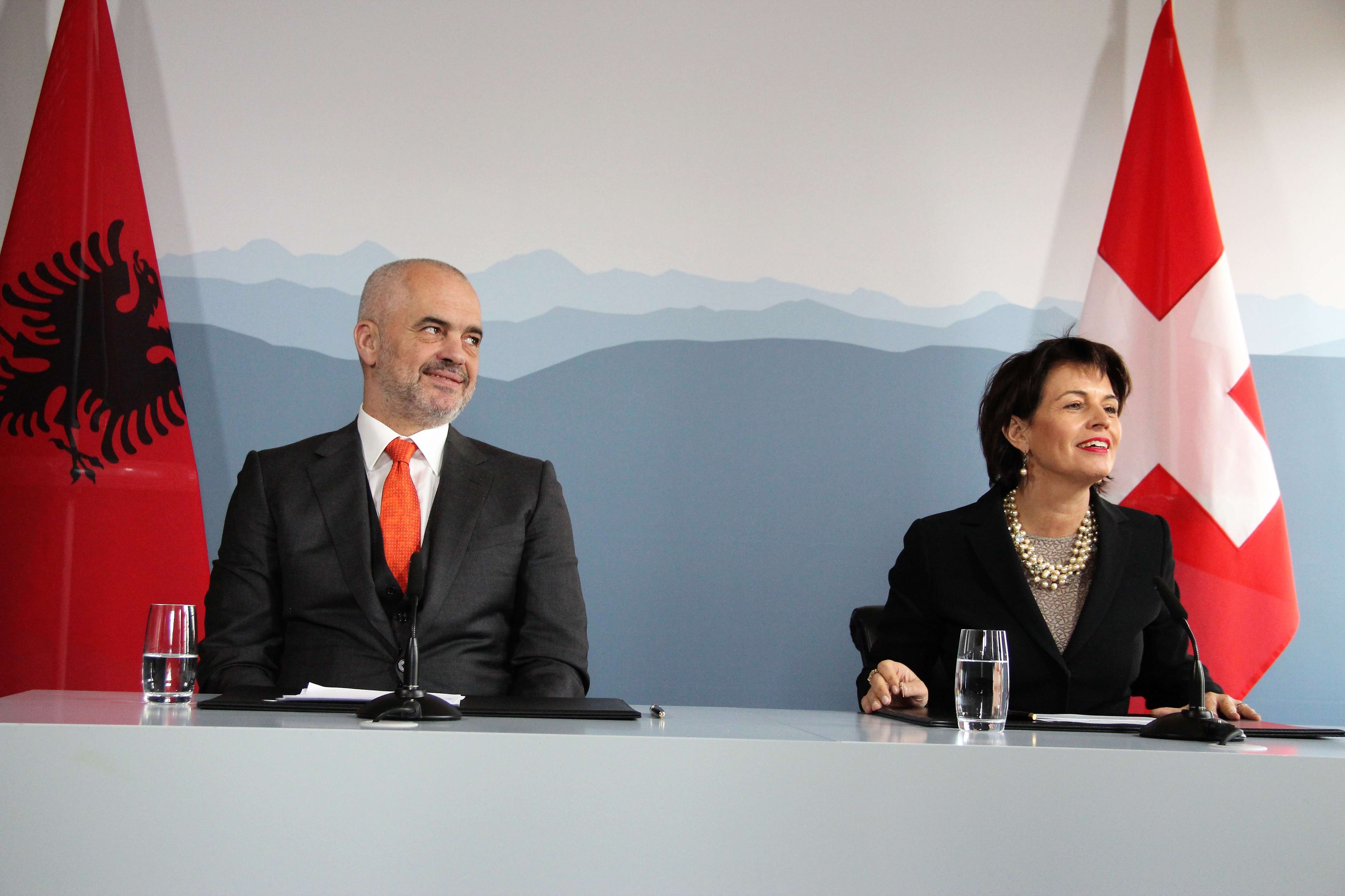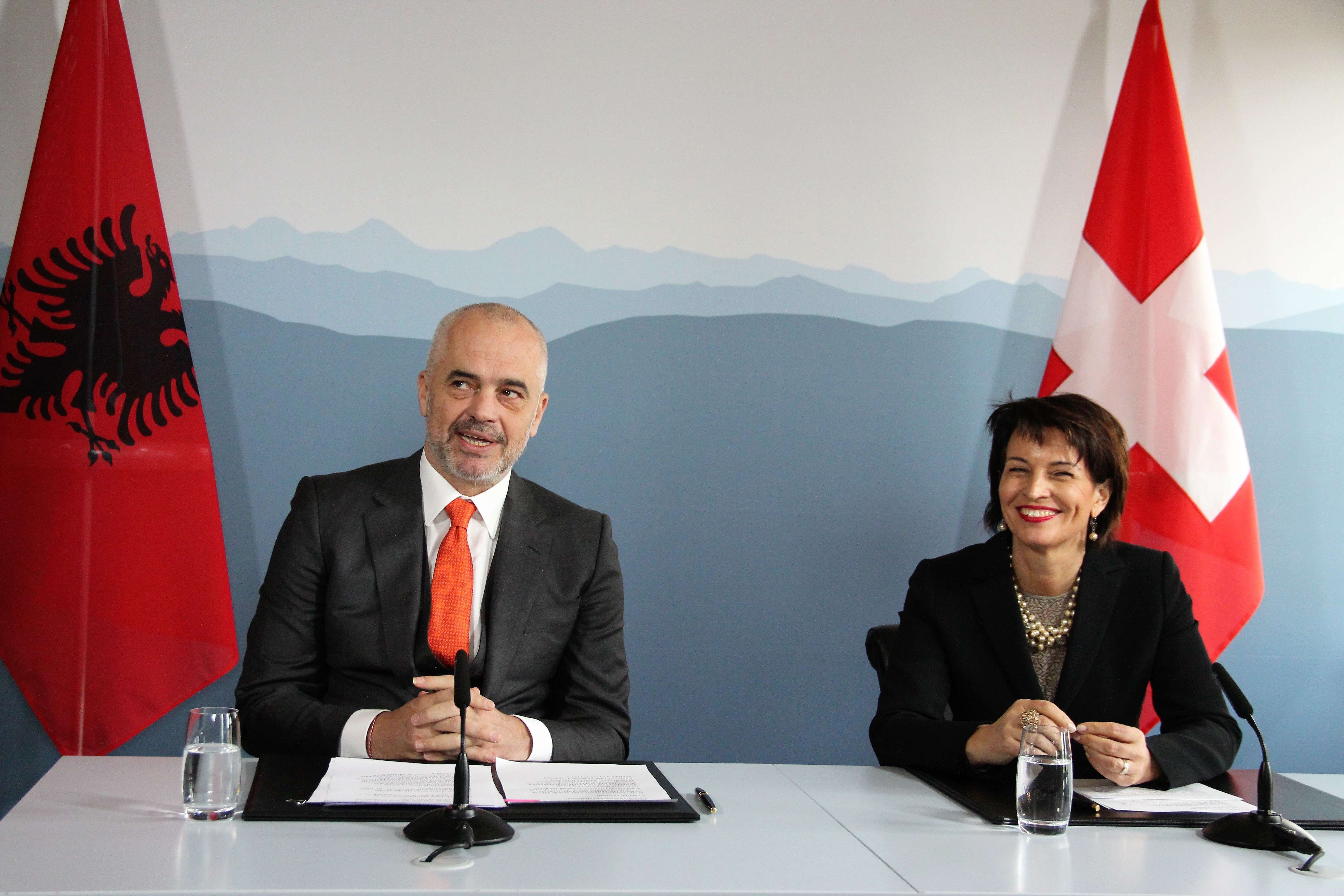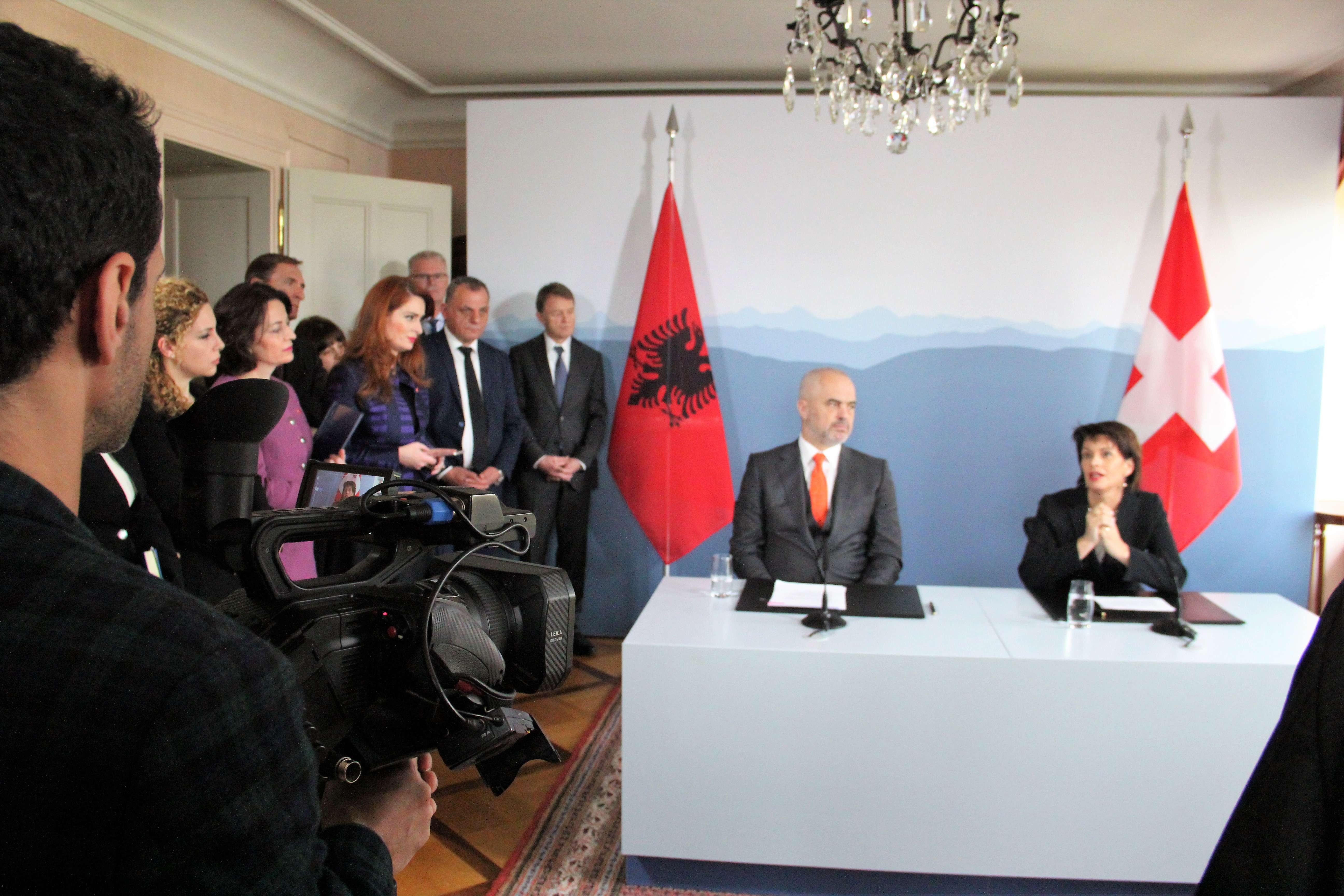 Pas nënshkrimit ceremonial të marrëveshjes dy krerët e qeverive, Doris Leuthard dhe Edi Rama kanë bërë një paraqitje para gazetarëve me ç`rast kanë vënë në pah rëndësinë e kësaj vizite për të dy vendet.