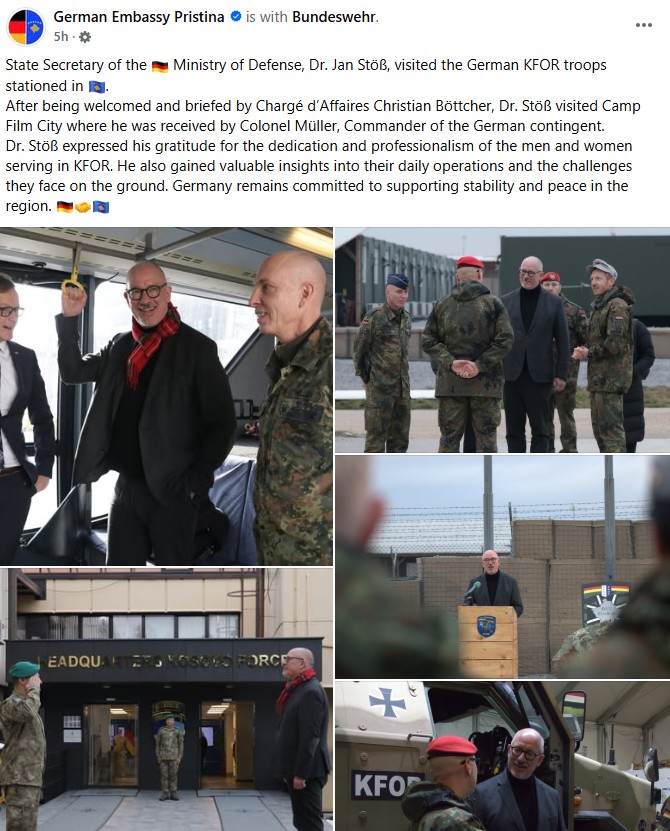 Sekretari i Shtetit i Ministrisë gjermane të Mbrojtjes, Dr. Jan Stöß, ka vizituar trupat gjermane të KFOR-it të dislokuara në Kosovë
