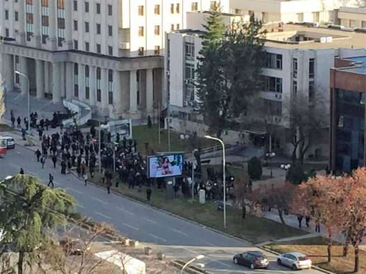 Mbështetësit e VMRO-DPMNE-së i janë përgjigjur thirrjes së kësaj partie për të dalë të protestuar kundër arrestimit të 36 personave që akuzohen lidhur me ngjarjet e dhunshme në Kuvend mbrëmjen e 27 prillit